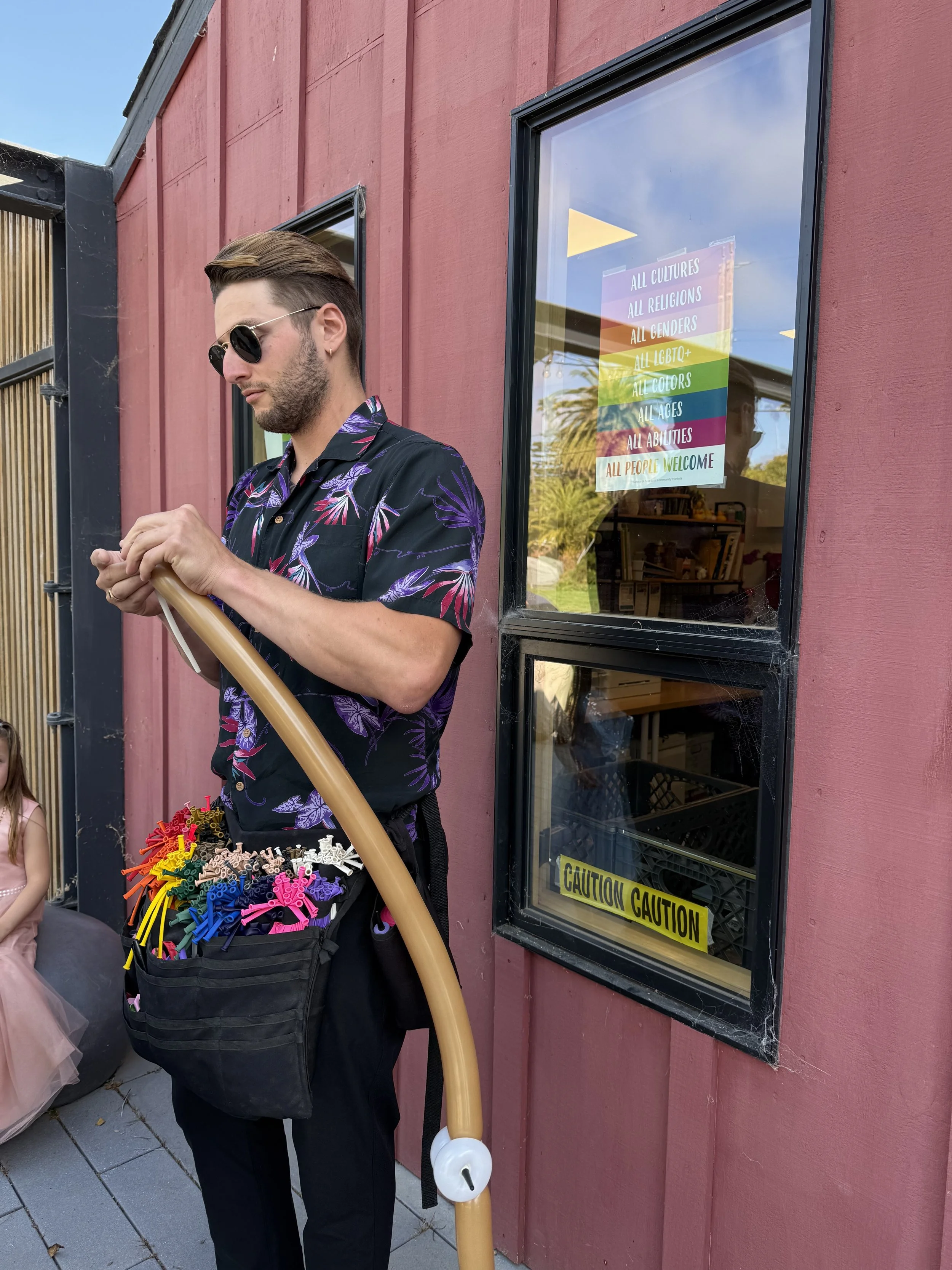 It all started when a 4th grade school project had me learning a new skill. I chose balloon twisting and quickly fell in love with the art of twisting and social aspect of performing! I’ve since been twisting balloons for over 15 years both professionally and just for fun! I’ve even twisted balloons at a wedding!